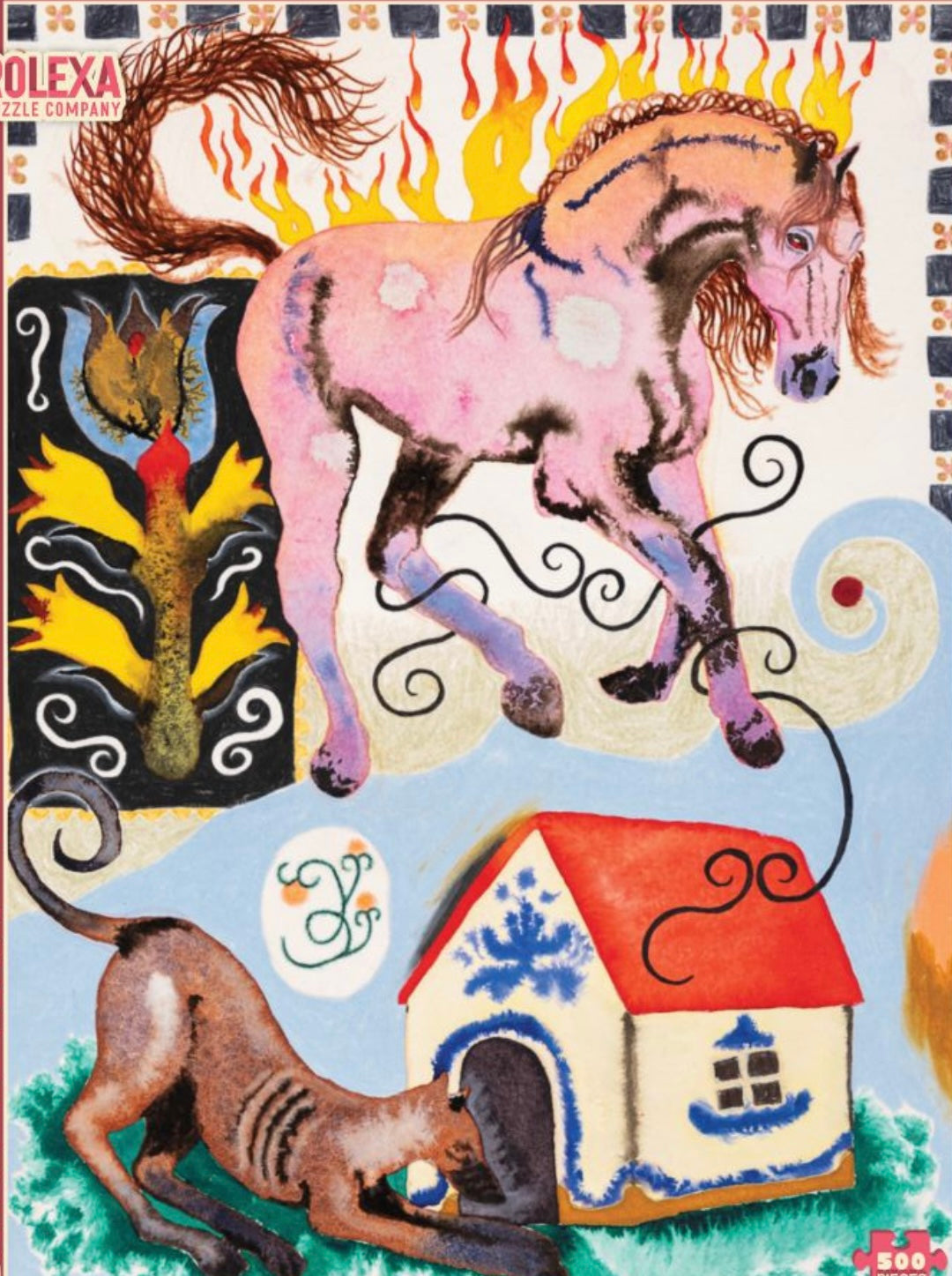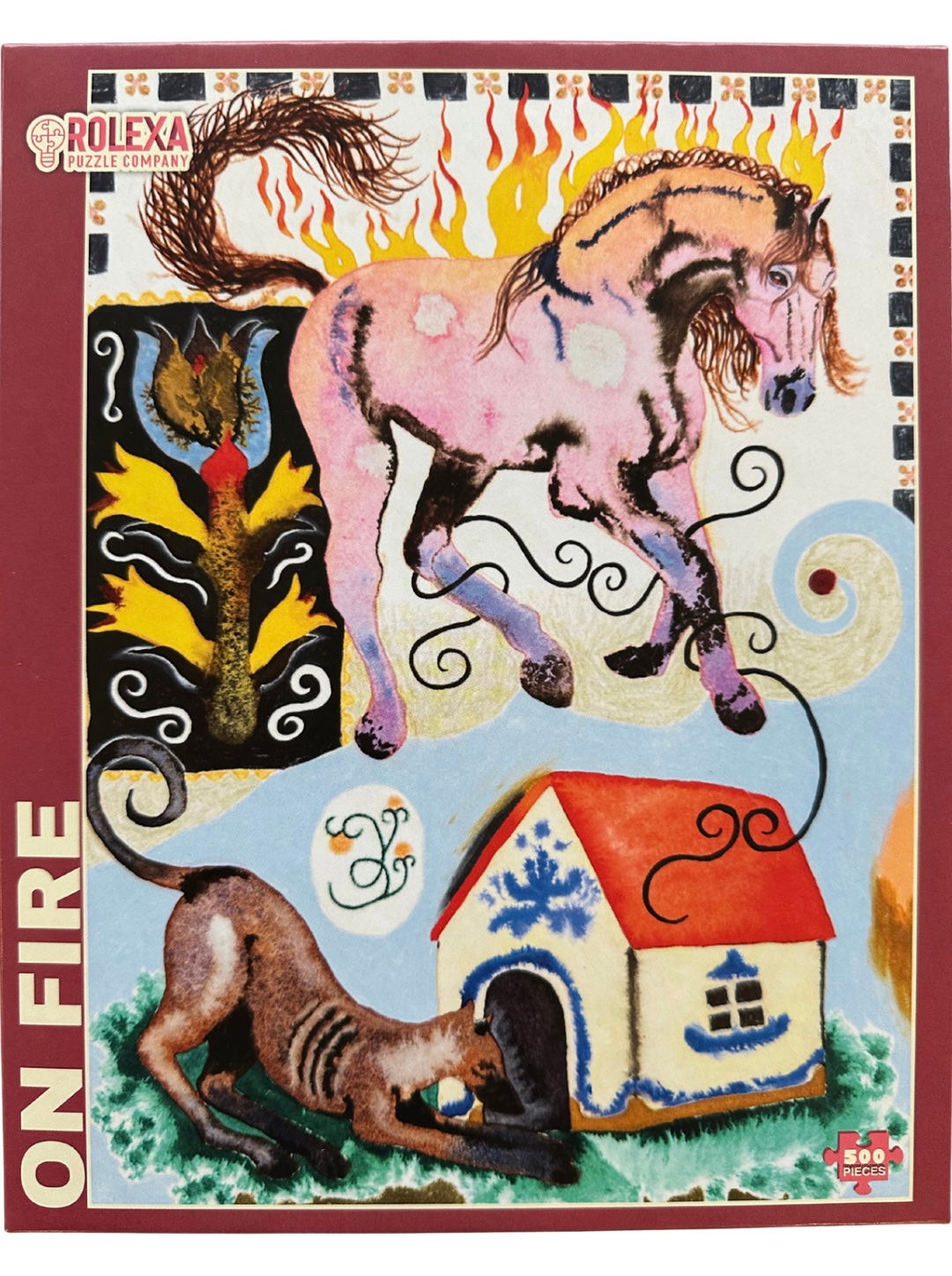 On Fire is a bold and imaginative 500 piece puzzle created by an independent artist whose surreal vision blends fiery horses, mythic symbols, and dreamlike color. This striking artwork challenges and inspires as you piece together a world where movement, magic, and emotion collide.